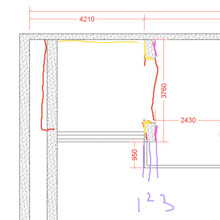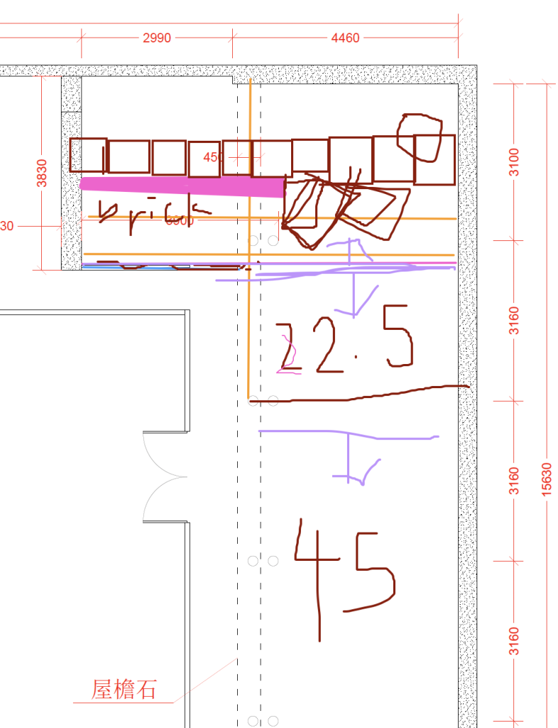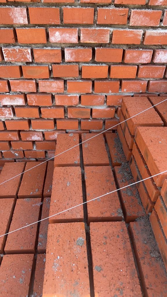 新石墙与老瓦片的连结。这儿以前是养鸡的。/ Stone wall aligned to former ceramic tile infill.